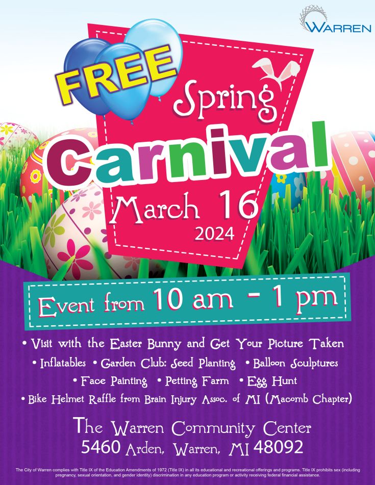 The Warren Spring Carnival returns to the Warren Community Center on Saturday, March 16th from 10 AM – 1 PM.